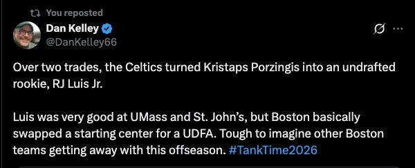 Overall, the Celtics sent out three future second-round picks to go from Porzingis to Luis Jr. They got one back in return, making a net spend of two picks in total. Not bad considering the amount of luxury taxes those moves helped shave off the 2025-26 payroll.