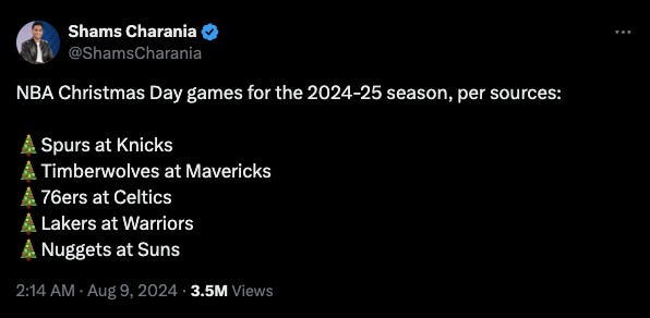 The Tea: Celtics get the Philadelphia 76ers on Christmas Day.