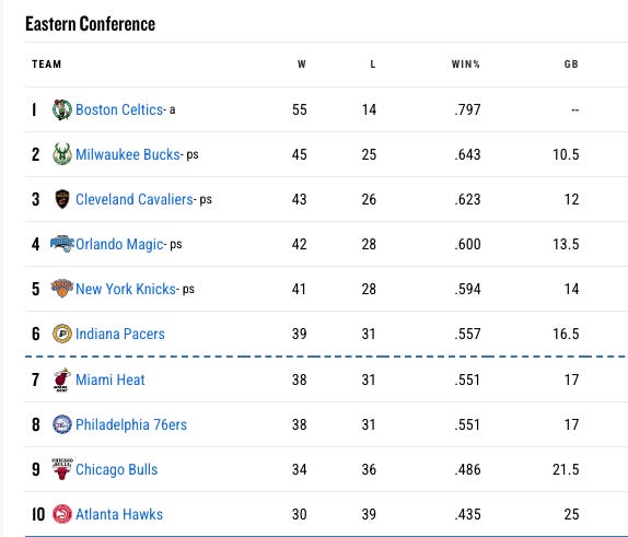 While we’re all sitting here loving how the Celtics are about to cement themselves as the 1st seed in the East, multiple teams are battling out in the middle and lower ends of the conference. The primary battle is to avoid the play-in tournament, which will directly impact the Celtics.