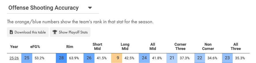 The Celtics might be dead last in rim frequency this season, but they’re 2nd in FG% within four feet of the bucket.