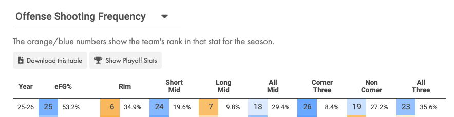 However, given the Sixers' success defending non-corner looks and their inability to limit downhill drives, leaning into a spray-based offense, looking for corner shooters to score off the catch, could be the ideal counter to how the Sixers defend the perimeter.