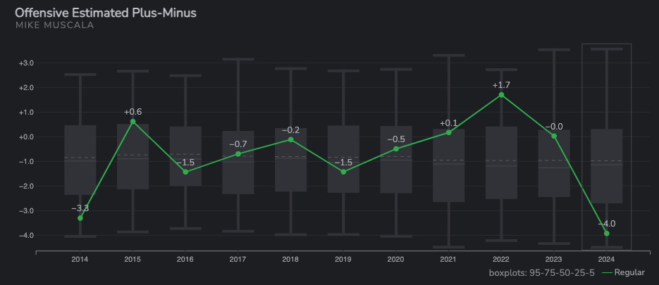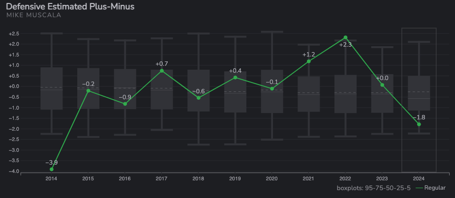 The same can be said for Mike Muscala. Here's his defensive EPM