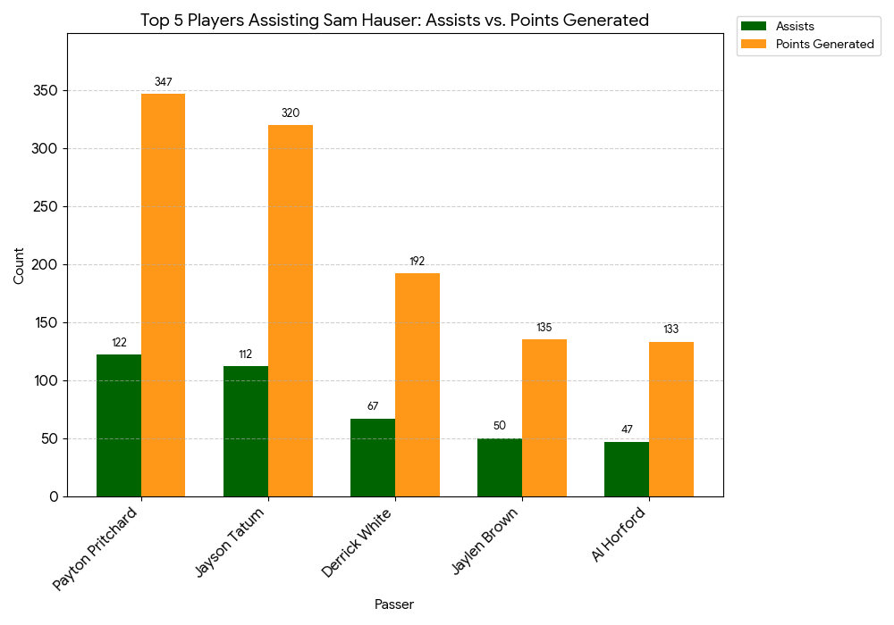 🗣️ Over the past three seasons, only Payton Pritchard has found Sam Hauser with more assists than Jayson Tatum, per PBP Stats.