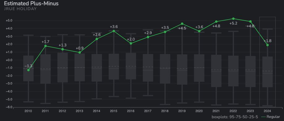 However, you have to contextualize the talent around him. The role he’s playing and how he’s doing more to impact the game in ways that don’t always show up on the box score. As we’ve seen when players are out of the rotation, Holiday is still capable of sliding into a bigger role, similar to what we’ve seen from him in previous seasons.