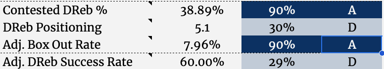 Interestingly, Kornet is one of the better box-out bigs in the NBA. The Basketball Index ranks him in the 90th percentile among bigs for box-out rate but in the 29th percentile for defensive rebound success rate.