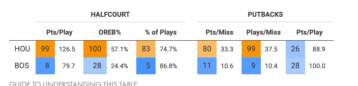 They averaged 0.8 points per offensive possession, opposed to Houston’s 1.27 points per 100.