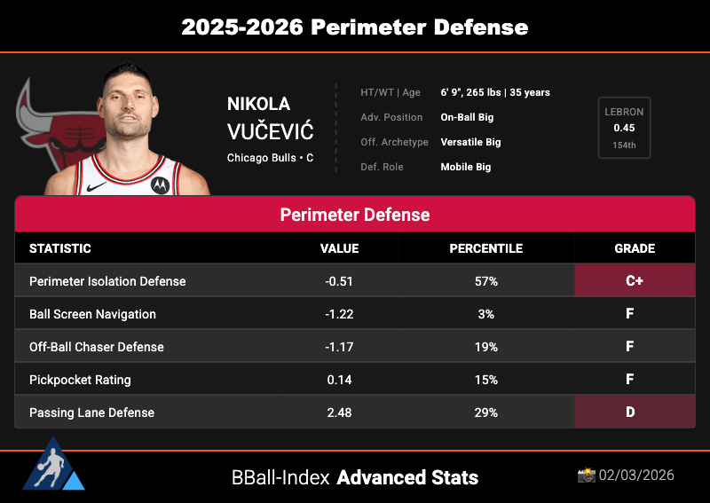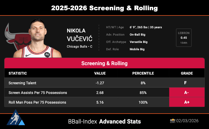 The problem is that a key skill Mazzulla demands of his bigs (screening ability) is among Vucevic’s biggest weaknesses.