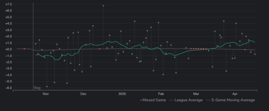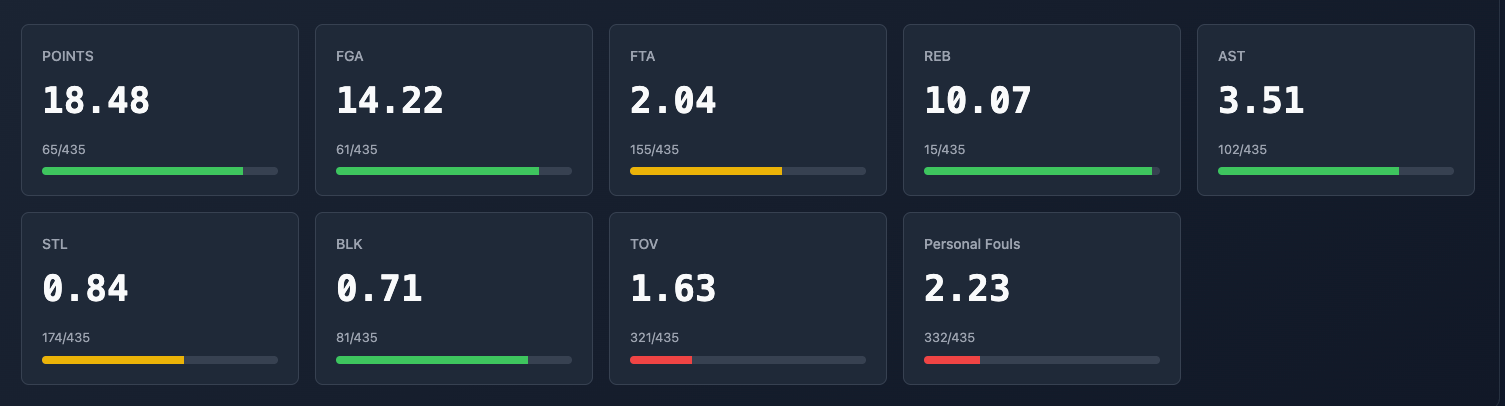 Rim Protection Concerns: Despite standing 6'10" with solid length, Vucevic has never been much of a shot deterrent. His block rate of 1.1% last season ranked him in the 26th percentile among centers. When opponents attacked the rim with Vucevic as the primary defender, they converted at a 69.9% clip, scoring on 5.4 of their 7.1 attempts per game – well above league average for shots at or near the rim.